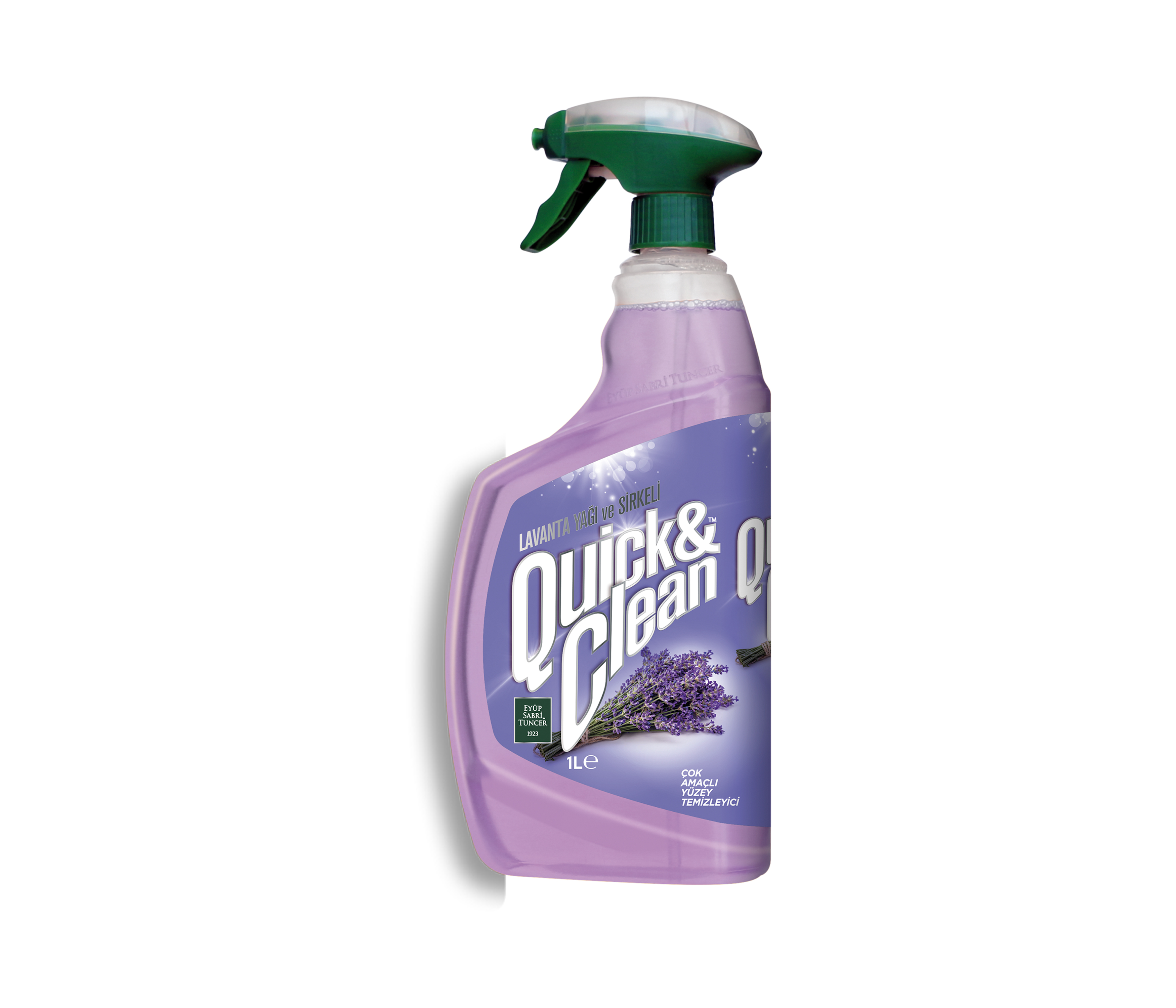 Eyüp Sabri Tuncer Quick & Clean Doğal Lavanta Yağlı Yüzey Temizleyici, ferahlatıcı lavanta kokusu ile silinebilir yüzeylerde derinlemesine hijyen sağlar. İçeriğindeki doğal lavanta yağı, sirke, soda ve isopropil alkol sayesinde, yüzeydeki kir ve lekeleri kolayca temizleyip derinlemesine hijyen sağlarken; lavanta kokusuyla uzun süreli ışıltı ve parlaklık kazandırır.
